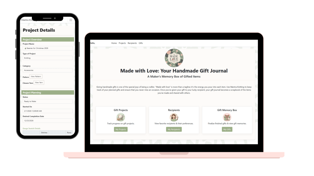 A fully custom web application built with ASP.NET Core MVC with SQL Server database. Designed specifically for crafters, the application allows users to track handmade gifts, recipients, and progress over time. This project highlights our ability to design purpose-built software tailored to unique workflows that aren’t served well by off-the-shelf tools.